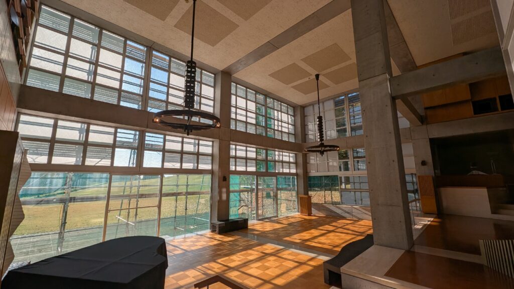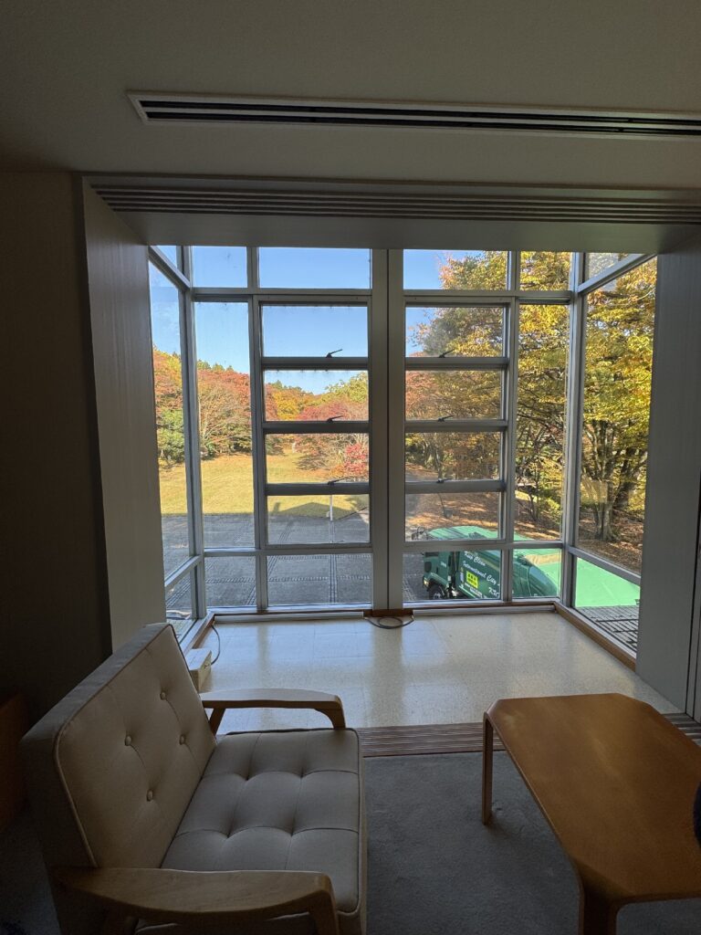 続いて前沢ガーデンハウスを見学しました。緑に囲まれた丘陵地で大谷川沿い自然豊かな場所に研修施設として建てられ、1984年にはアメリカ元大統領のジミー・カーター氏が宿泊された迎賓館としての機能をもつ建物です。