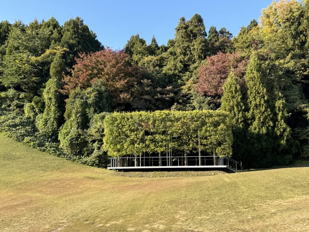 シラカシとスギで囲まれた白花亭は、月日が経ち森も一体化しています